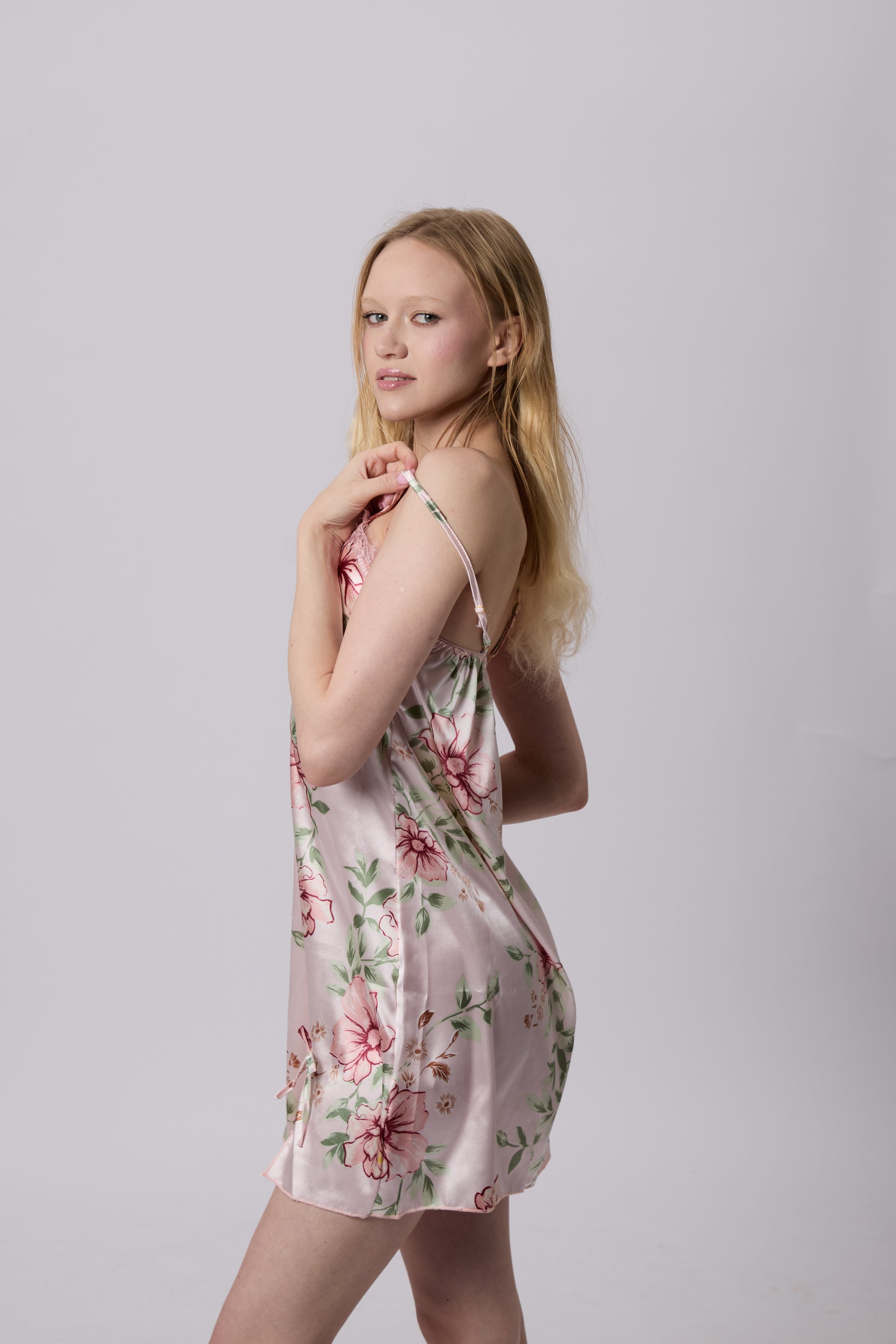 Krásné růžové květinové noční prádlo
