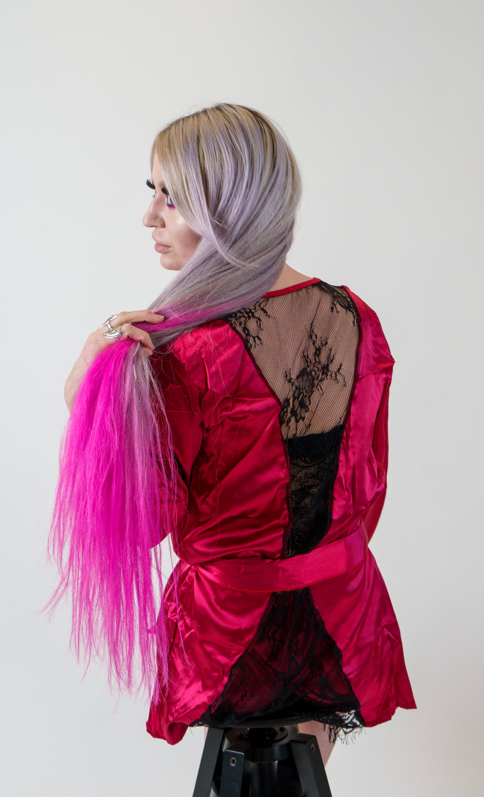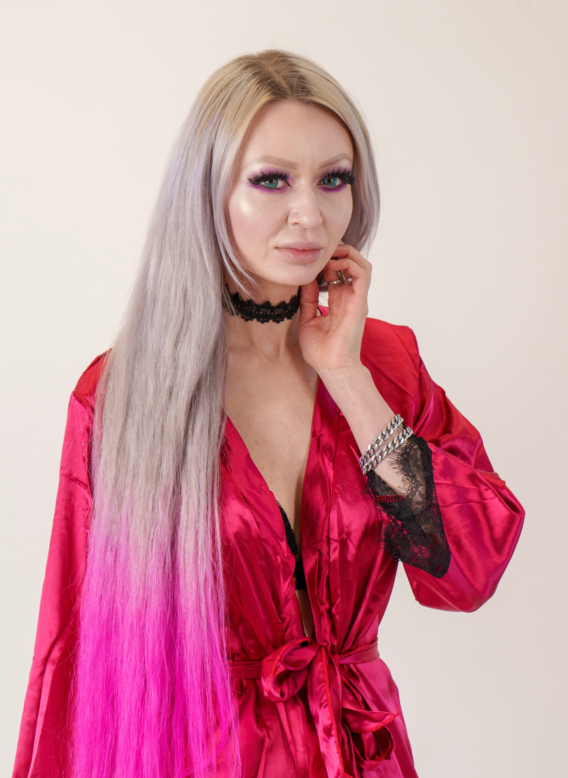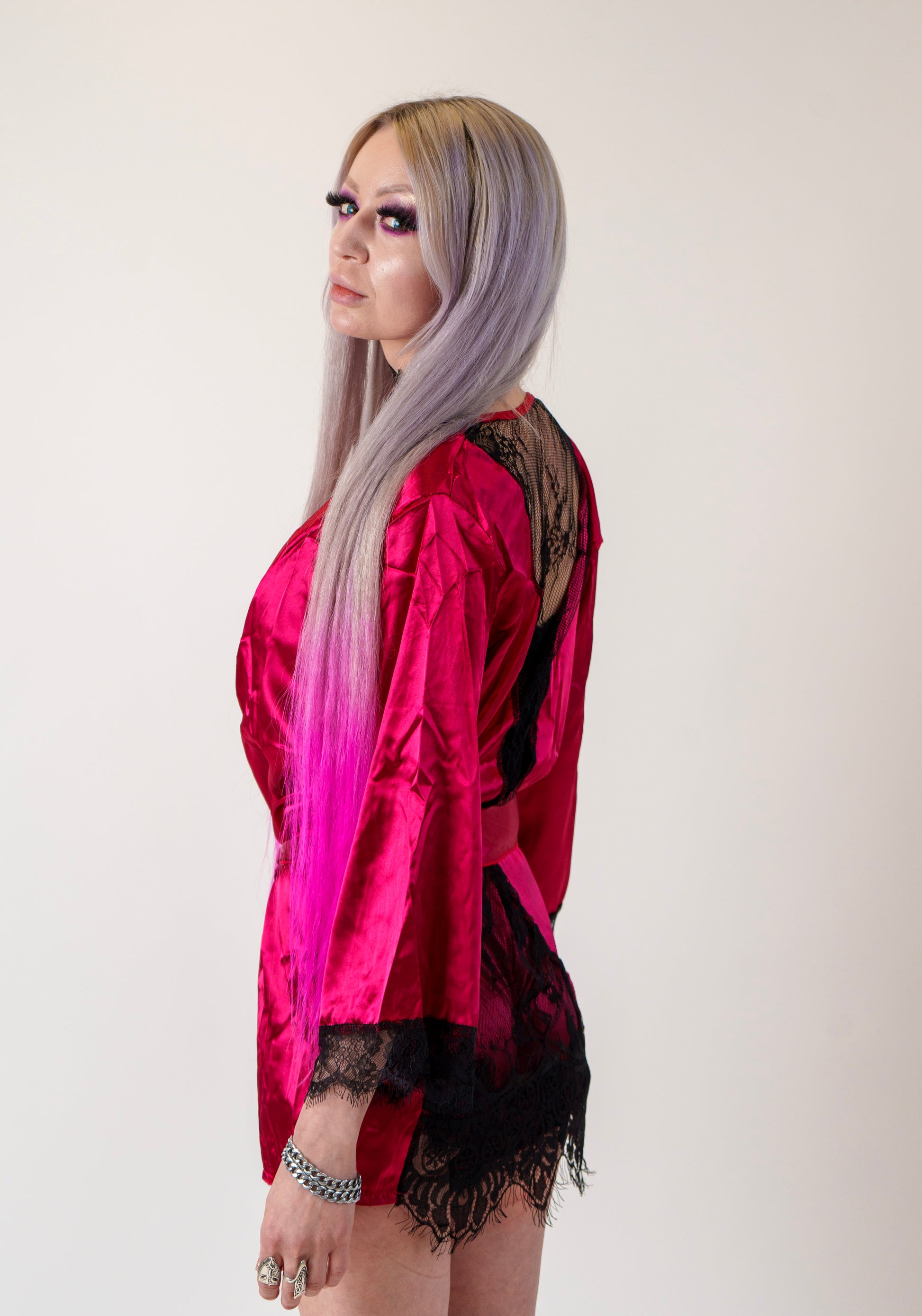 - Dark red and black robe