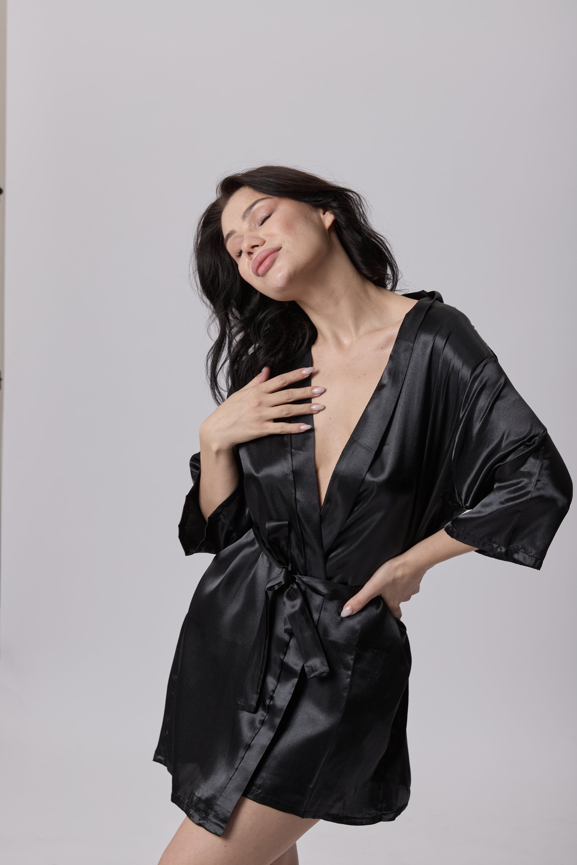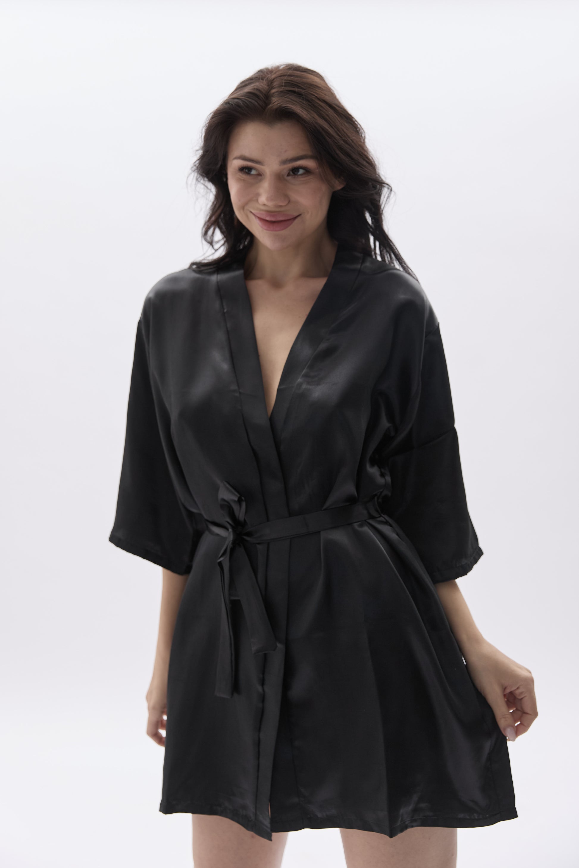 Saténová noční košilka s krátkým rukávem a páskem